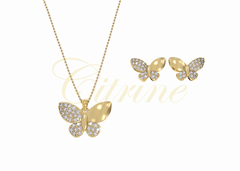 Elegant butterfly jewelry set with pavé-set diamonds and polished wings.