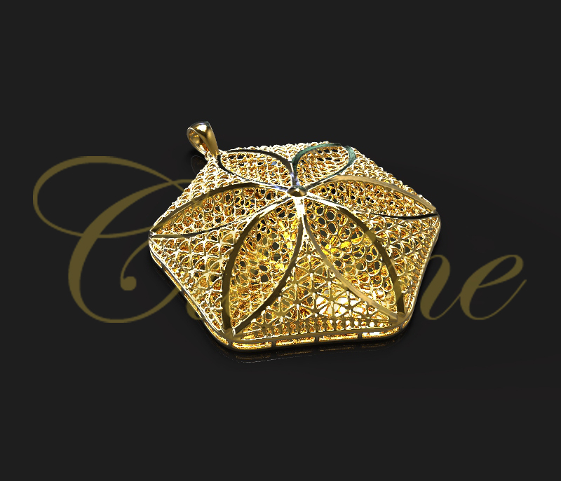 Gold Hexagon Flower Filigree Pendant