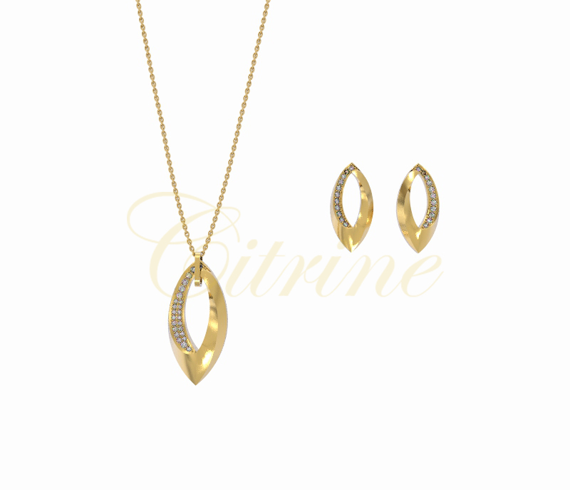 This elegant jewelry set features a minimalist marquise silhouette with refined openwork and shimmering pavé-set stones. The smooth, polished finish contrasts beautifully with the sparkling accents, creating a timeless design that pairs effortlessly with both casual and formal looks.
