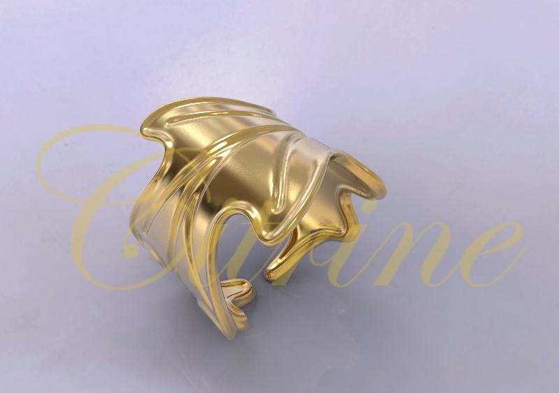 Explore bold artistry with this sculptural folded ring, designed to wrap your finger in fluid golden contours. Inspired by modern abstract forms, this piece showcases smooth, polished surfaces with dynamic folds and curves, embodying the elegance of wearable art. Perfect for making a statement, whether worn alone or paired with minimalist pieces for contrast.