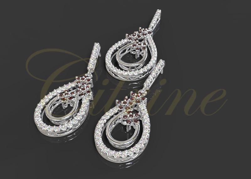 This sophisticated jewelry set is designed in a graceful teardrop silhouette, embellished with brilliant white diamonds and accented by vibrant ruby stones arranged in delicate clusters. The perfect combination of classic elegance and a touch of color makes this set a timeless addition to any fine jewelry collection.